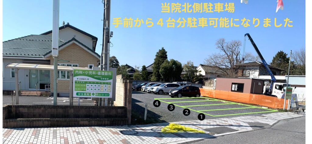 当院の駐車場の増設について 2026年3月18日 最終更新日時 : 2026年3月18日 Kentaro111当院北側の駐車場に新たに4台分の駐車が可能となりました。当院敷地内駐車場の混雑時にはぜひご利用ください。XBluesky